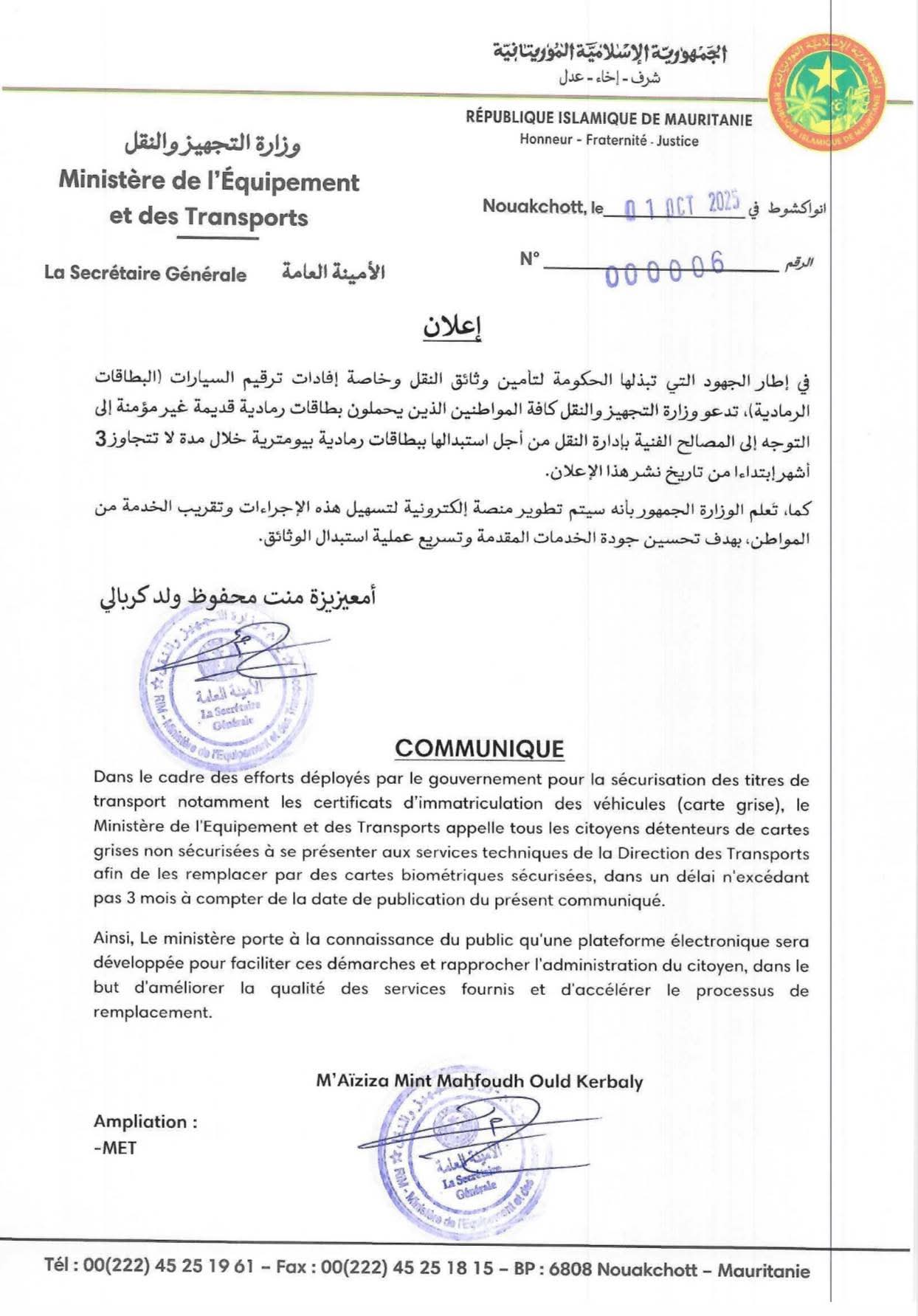 وأكدت الوزارة أن الهدف الأساسي من هذه الخطوة هو تأمين وثائق النقل، وخاصة إفادات ترقيم السيارات (البطاقات الرمادية)، بالإضافة إلى تحسين دقة البيانات المتعلقة بالمركبات وتعزيز الشفافية في المعاملات الإدارية.