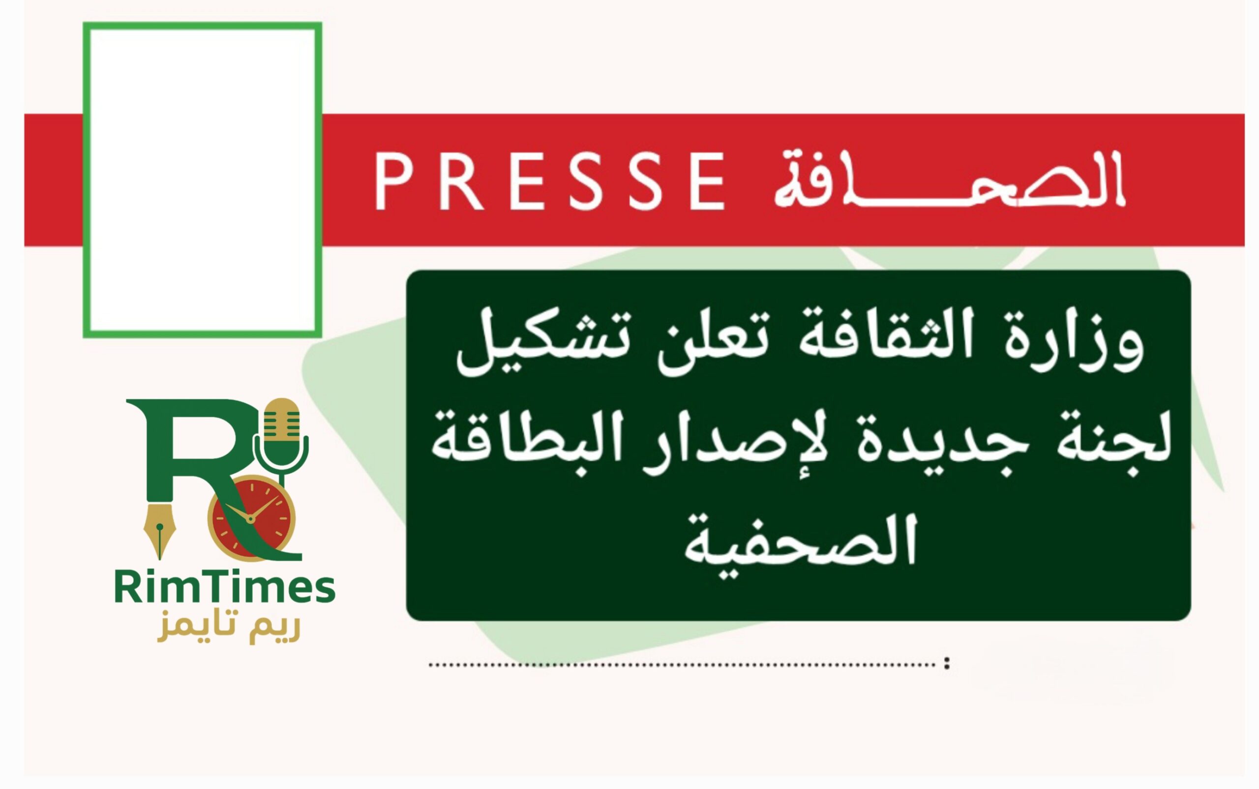 في خطوة هامة لتعزيز تنظيم مهنة الصحافة وضمان حقوق الصحفيين، أصدر معالي وزير الثقافة والفنون والاتصال والعلاقات مع البرلمان، الناطق باسم الحكومة، السيد الحسين ولد مدو، قراراً بتشكيل لجنة متخصصة مكلفة بإصدار البطاقة الصحفية، تماشياً مع أحكام قانون الصحفي المهني الجديد.