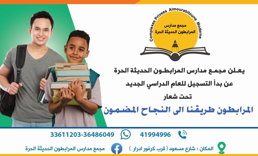 يعلن مجمع مدارس المرابطون الحديثة الحرة عن بدأ التسجيل للعام الدراسي الجديد 2025–2026 تحت شعار :