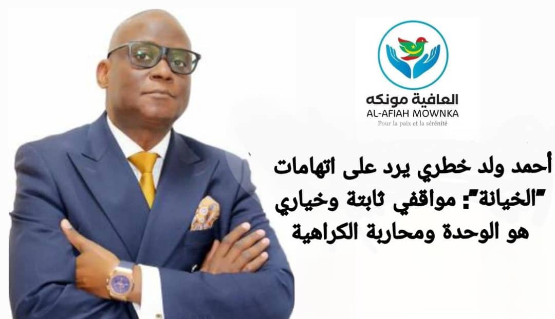 في رد صريح على الاتهامات التي وجهها له أحد ناشطي حركة “إيرا”، خرج رئيس منظمة العافية أمونكه، أحمد ولد خطري، عن صمته نافياً أي انتماء له إلى حركات شرائحية، ومؤكداً أن مواقفه لم تتغير قبل تعيينه ولا بعده، وأنه سيظل ثابتاً على نهجه في محاربة التطرف والإشاعات والدفاع عن قيم الوحدة الوطنية.