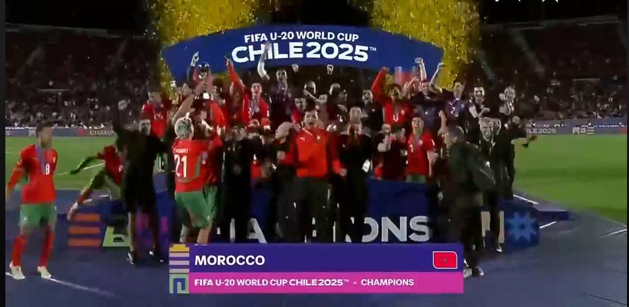 في ليلة لا تُنسى من ليالي كرة القدم، ارتفع العلم المغربي عاليًا في سماء سانتياغو، وتعالت أنغام النشيد الوطني في المدرجات، احتفالًا بإنجاز غير مسبوق، بعدما توّج المنتخب المغربي لأقل من 20 سنة بطلاً لكأس العالم للشباب، إثر فوزه المستحق على نظيره الأرجنتيني بهدفين دون رد، مساء اليوم الاثنين بالعاصمة الشيلية سانتياغو.