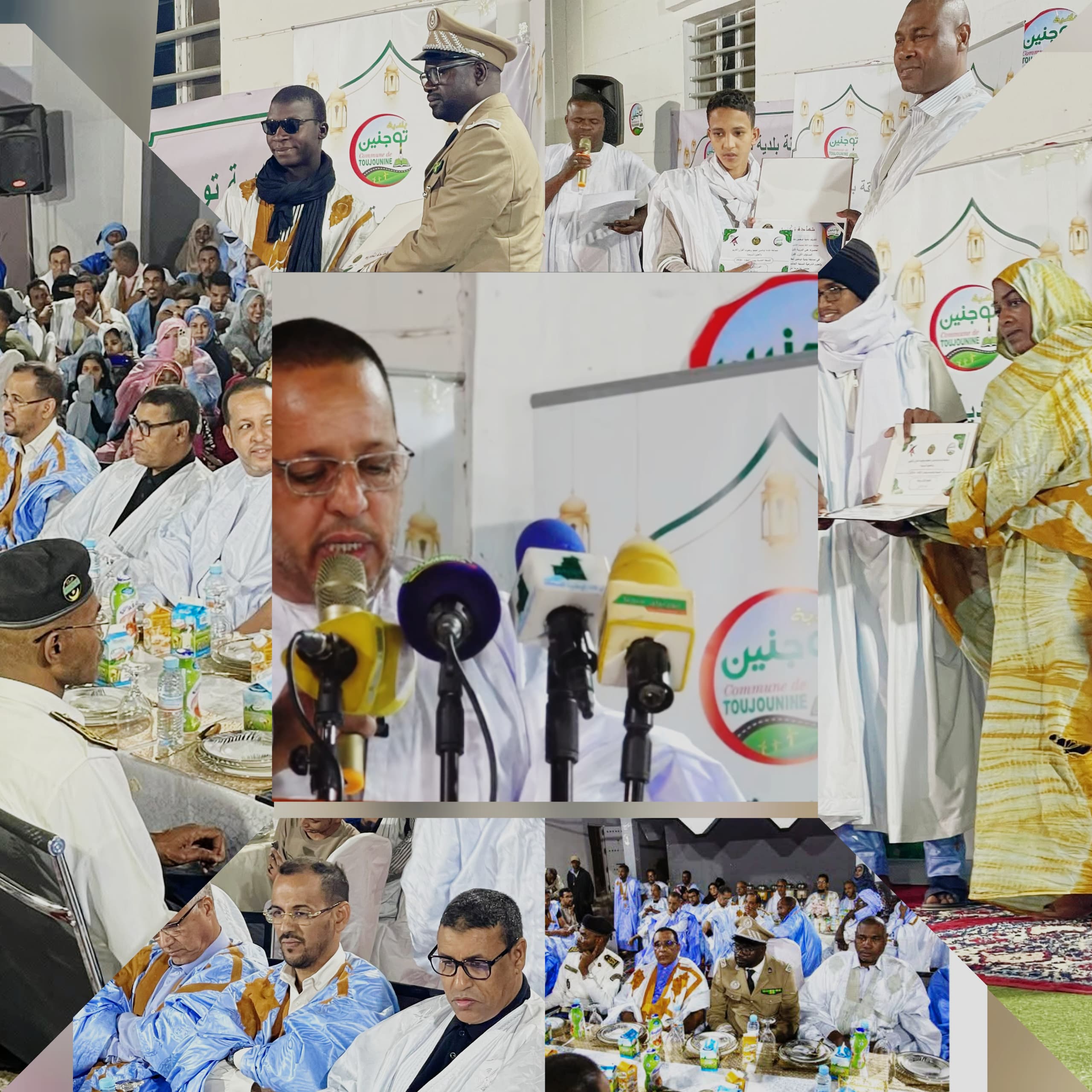 في أجواء رمضانية مفعمة بروح الإيمان والتنافس في الخير، نظمت بلدية توجنين مساء الأحد حفلاً لتكريم الفائزين في مسابقة حفظ وتجويد القرآن الكريم والعلوم الشرعية، وذلك بفضاء البلدية تحت إشراف والي نواكشوط الشمالية الناجي ولد خطري.