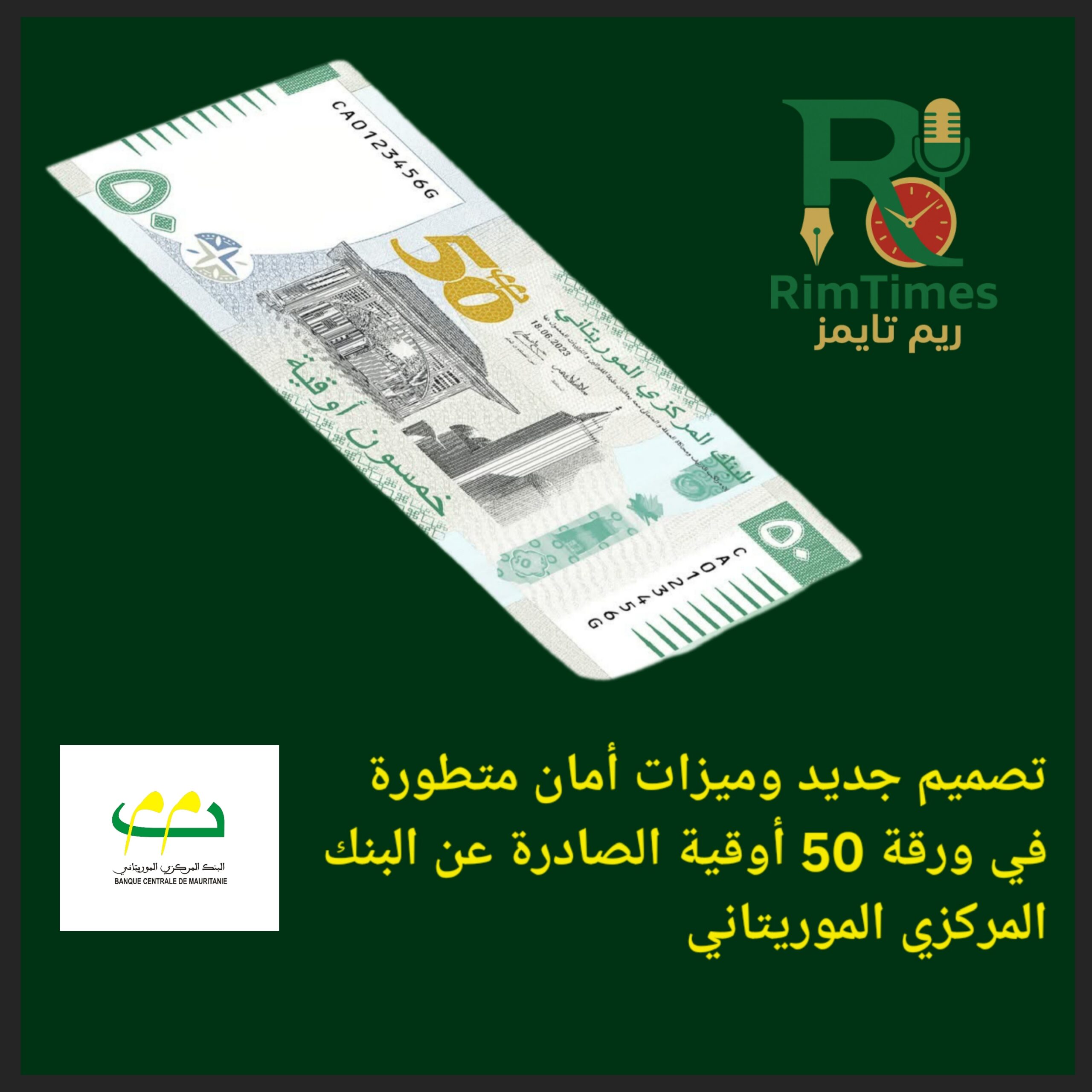 في خطوة ترمز إلى التحديث والوفاء للرموز الوطنية، كشف البنك المركزي الموريتاني عن إصدار جديد ومبتكر من ورقة 50 أوقية، يتميز بتصميم عصري وعناصر أمان ميكرو-بصرية هي الأحدث في مجال طباعة العملات.