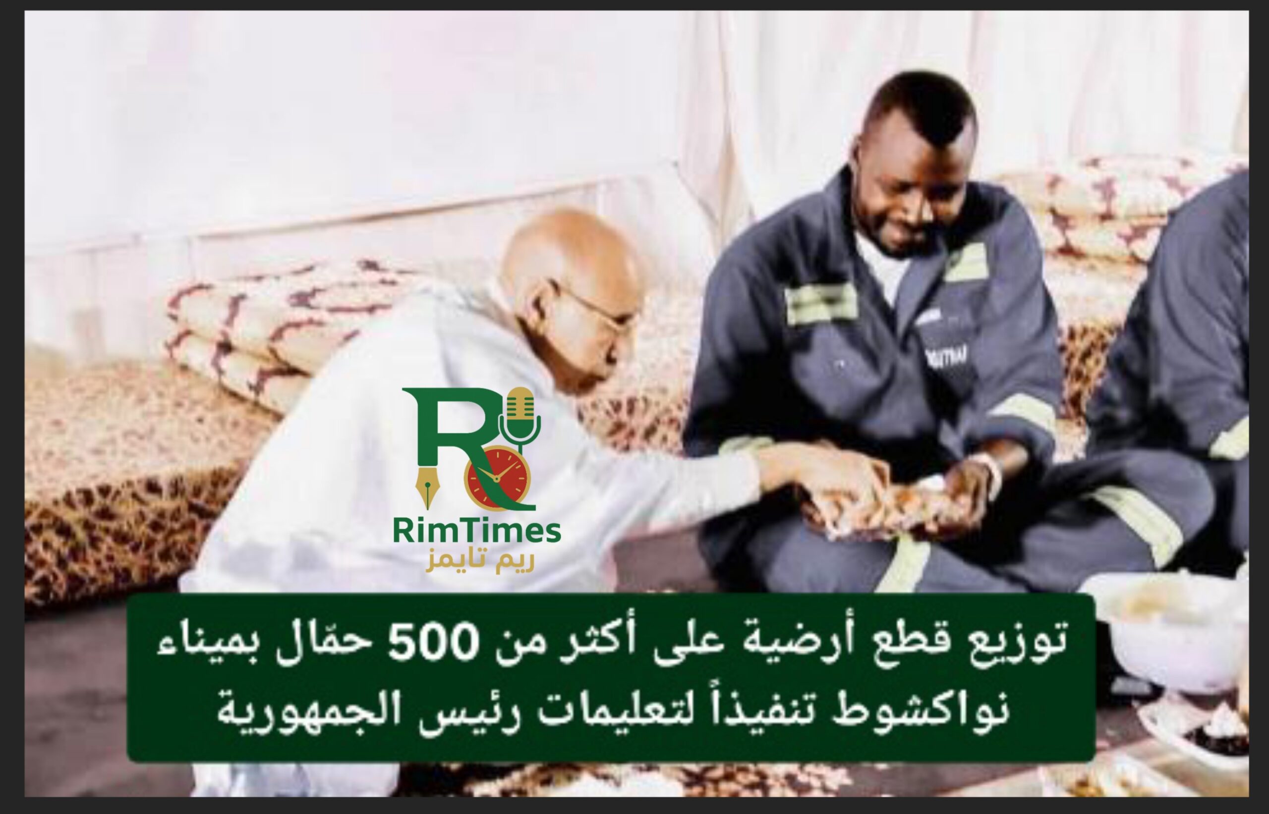 “بعد قليل، وتنفيذا لوعد فخامة رئيس الجمهورية السيد محمد ولد الشيخ الغزواني لحمالة ميناء نواكشوط المستقل، وترجمة لإرادته في دعم الشغيلة الوطنية والفئات الهشة، سيستفيد 528 حمالا من العمال الدائمين من توزيع قطع أرضية مجانا في مناطق سكنية هامة. شكرا جزيلا فخامة الرئيس.”